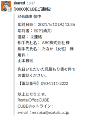 14:05 受電報告 相手:ABC株式会社 たなか(女性)様