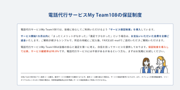 実際のオペレーターの電話応対品質を確認するためにも、無料トライアルや全額返金制度が設けられているかは必須の確認事項です。