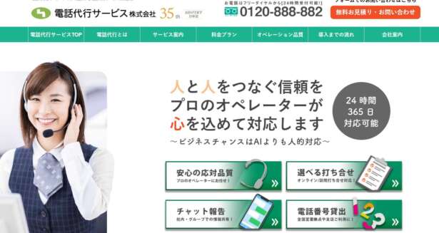 電話代行以外にもコールセンターや通信販売、キャンペーン事務局などの対応も行っています。プランの最小コール数が150であり、他社よりも最小コール数が大きい点が特徴です。月コール数が少ない方向けのプランはありません。