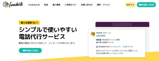 fondeskは、シンプルな料金体系が特徴の電話代行サービスです。プランは1つのみではありますが、受電対応の報告はメール以外に、Slack、Chatwork、Teams、LINE、LINEWORKS、GoogleChatから選ぶことができます。